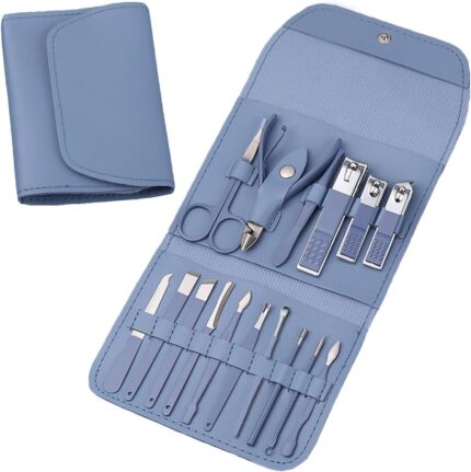 Manicure Pedicure Set, 16 pcs Stainless Steel Nail Care Tools Grooming Kit with Travel Leather Case, Personal Care Grooming Kit Gifts for Men Women (Blue)