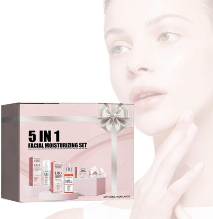 Makbeaty 24K Gold 5-in-1 Skincare Gift Set with Facial Cleanser,Facial Toner,Lotion,Facial Essence,Facial Cream Smoothes Wrinkles Even Skin Tone hydrating Moisturizing Firming Skin