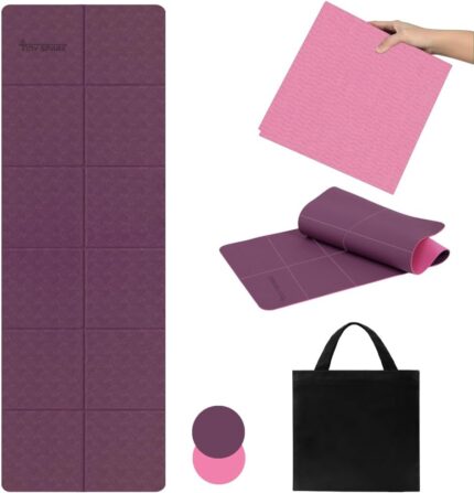 Foldable Yoga Mat,6mm TPE Yoga Mat,Double Layers Exercise Mat with Anti-slip Function&A Storage Bag for Yoga,Pilates and Fitness Exercise,Compact Fitness Mat 183cm*61cm* 6mm