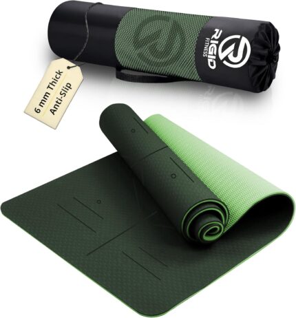 RIGID FITNESS Yoga Mat 6mm with Alignments – Anti-Slip TPE Yoga Mat with Carry Bag – Precision Alignment Lines, Lightweight & Durable for All Fitness Exercises- 183 * 66cm*0.6cm Thick