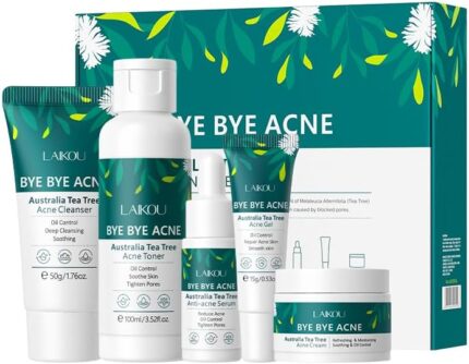 LAIKOU Tea Tree Acne Skincare Set, 5 pcs Teenage Acne Skin Care, with Facial Cleanser, Toner, Serum, Cream and Gel, for Pores Blackheads Exfoliate