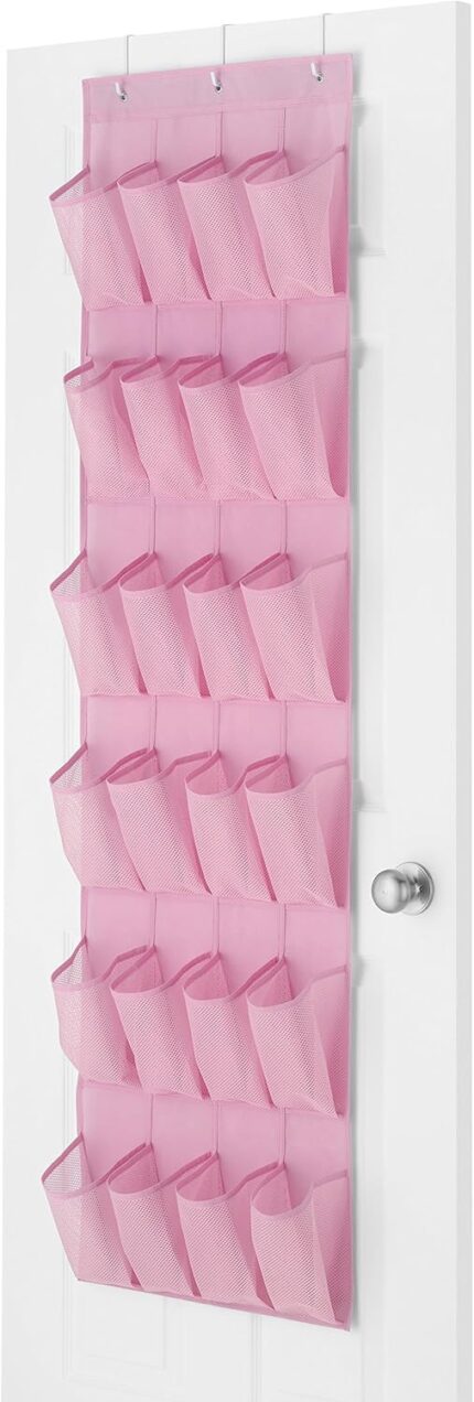 Whitmor 24 Pocket Over the Door Shoe Organizer – Pink