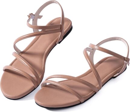Womens Flat Sandals Comfortable Gladiator Sandals for Women Dressy Summer Elastic Ankle Strap Flip Flops Casual Bohemian Beach Thong Sandals Shoes