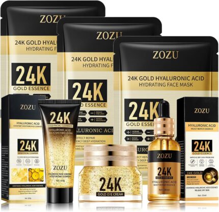 24K Skincare Set, Skin Care Gift Set,Hyaluronic Acid Serum Skincare Gift Set With Facial Cleanser,Face Serum,Eye Cream, Face Mask, Soothing Hydrating Anti-Aging Skin Care Kit For Women,Gifts Teen