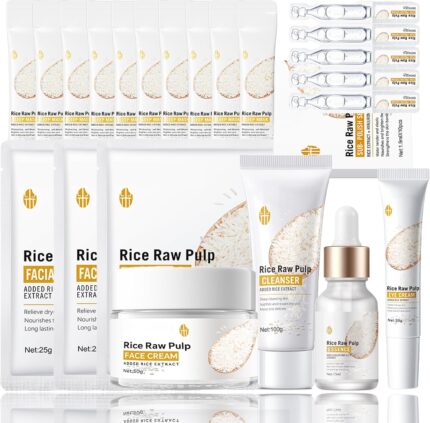 18PCS Rice Raw Pulp Skin Care Sets & Kits, Skin Care For Teenage Girls, Skin Care Set For Pamper Teenage Girls Gifts, Skincare Set, Cleanser, Serum, Cream, Mask, Eye Cream,Sub- Polish Serum,Sleep Mask