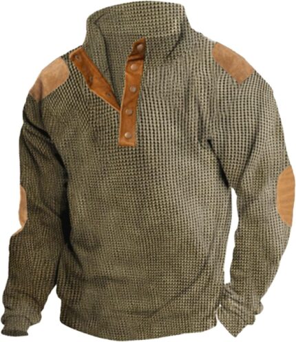 2024 Men’s 1/4 Button Fleece Sherpa Sweatshirts Long Sleeve Stand Collar Pullover Loose Vintage Sweatshirt Tops
