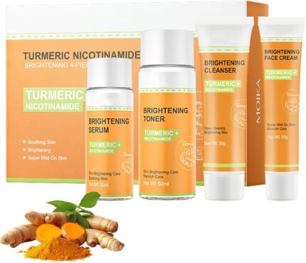 4pc Turmeric Skin Care Gifts Set for Women,Travel Size,Four Step Skincare Kit Contains Face Cleanser,Toner,Facial Cream,Skin Tightening Lift Improve Skin Elasticity For All Skin Types