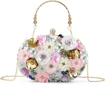 Freie Liebe Floral Clutch Purses for Women Evening Bag Formal for Wedding Beaded Evening Handbags Gold, Sliver, Black