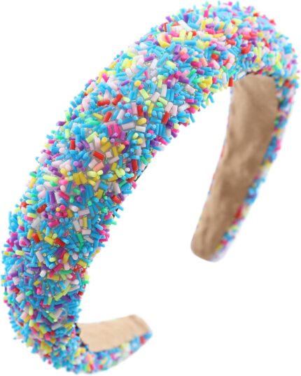 AUFUYAOLIN Women Color Block Headband Sprinkles Decor Hairbands Wide Fashion Hair Hoops Thick Padded Girls Hair Accessories Blue