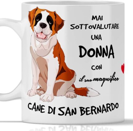Saint Bernard Dog Mug for Breakfast, Tea, Tea, Coffee, Cappuccino. Gadget Mug Never Underestimate A Woman with A Dog St. Bernard Dog