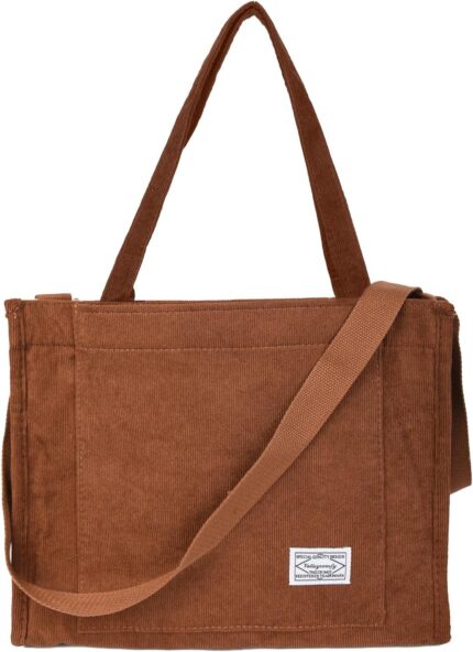Women Tote Bags Grocery Shoulder Bag Corduroy with Inner Pocket for Work Beach Lunch Travel Shopping Shopper Handbags