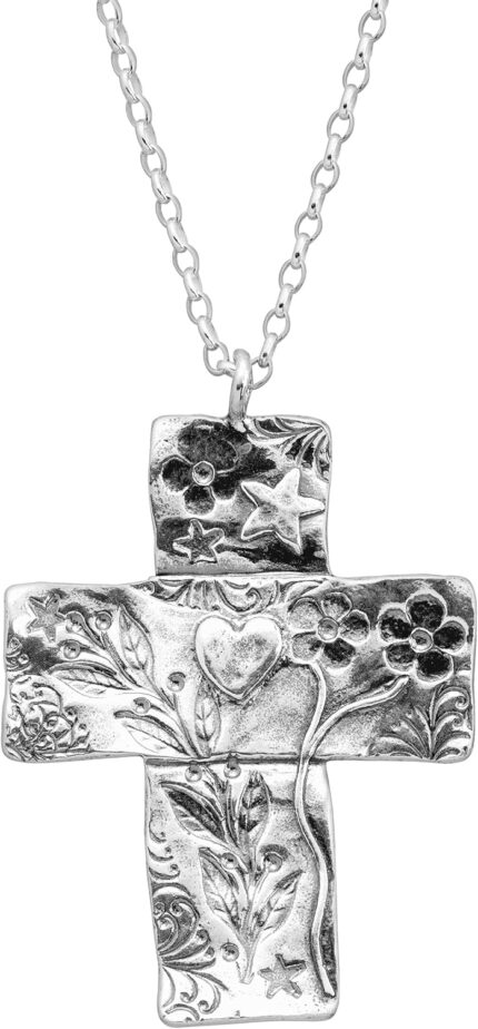 Silpada ‘Dropmore’ Floral Cross Pendant Necklace in Sterling Silver, 22″ + 2″