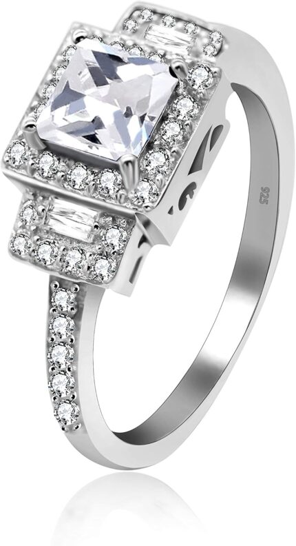 Uloveido Women 3g 925 Sterling Silver Square Cushion Cut Blue Cubic Zirconia Hollow Cross Promise Wedding Rings (Blue, White, Size J L O Q S T) JZ102