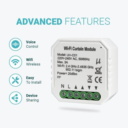 UniHoms Wifi Smart Curtain Module,Works with Amazon Alexa, Google Home Assistant and Siri