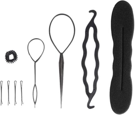 Tiiyee Hair Styling Set Hair Bun Braid Maker Hair Design Styling Tools Accessories Tail Hair Loop Tool Kit Spiral Hair Braid Braiding Tool for Women Girls (9PCS)
