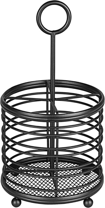 Spectrum Diversified Contempo Caddy Cutlery, Modern Dining Table Décor & Kitchen Organization, Silverware Holder with Handle, Black
