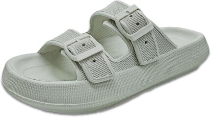 Adjustable Women Slide Sandals, Double Buckle EVA Slide Sandals with Adjustable Buckles, Non‑Slip Waterproof Beach & Pool Slippers for Women