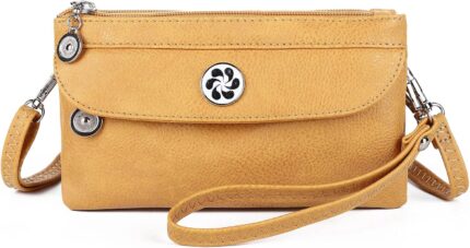 Angel Kiss Women’s leather Wristlet Clutch Wallet Double Corner Zip Small Crossbody Bag with Removable Wrist Strap