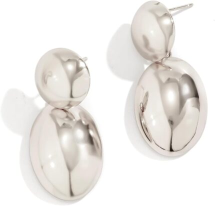 ALRNBY Gold Earrings for Women Chunky Gold Plated Ball Drop Dangle Earrings Dainty Silver Statement Stud Earrings Trendy Double Ball Jewelry Gifts Hypoallergenic