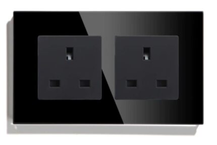 Eazyliv Smart Solutions Tuya SmatLife WiFi Wall Socket UK Outlet Glass Panel Remote Control Works with Amazon Alexa/Google Home (Black, Double Socket)