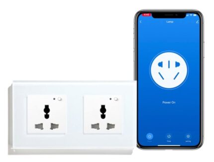 Eazyliv Smart Solutions Tuya SmatLife WiFi Wall Socket Universal Outlet Glass Panel Remote Control Works with Amazon Alexa/Google Home (White, Double Socket)