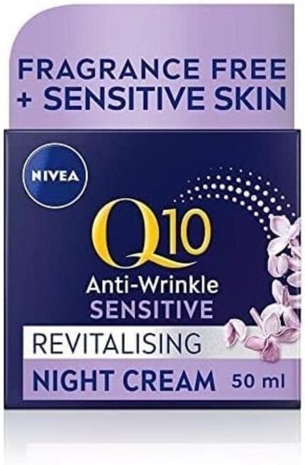 NIVEA Q10 Anti-Wrinkle Sensitive Revitalising Night Cream (50ml), Face Cream with Pure Skin Identical Q10 and Liquorice Extract, Sensitive Skin Cream