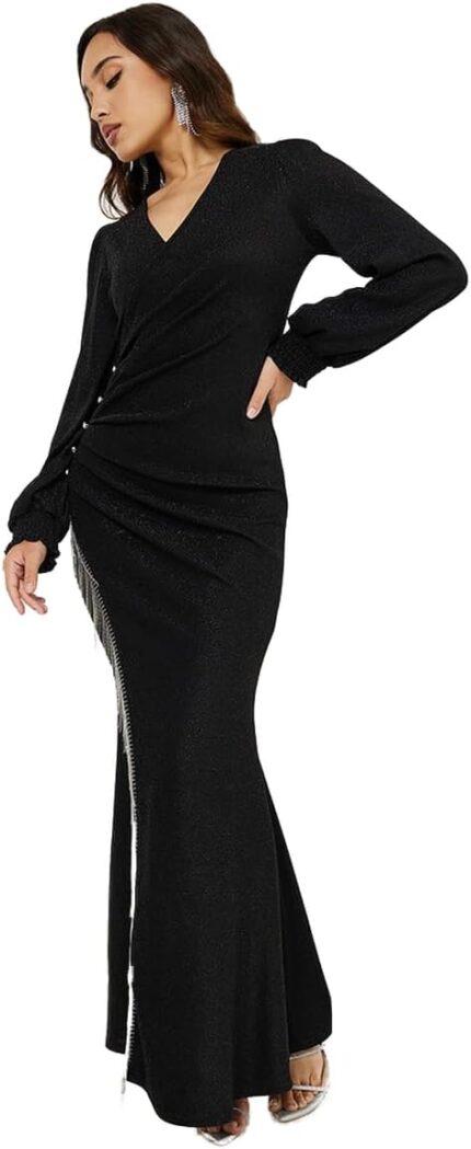 Styli Women’s Embroidered Elbow Sleeves Tiered Maxi Dress