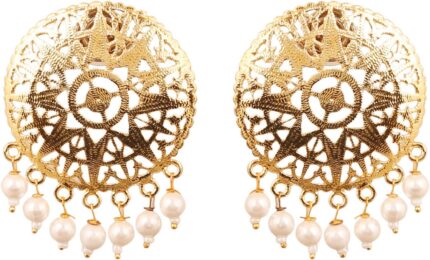 Touchstone Indian Bollywood fine filigree jali handcrafted Designer Jewelry Earrings In Antique Gold And Silver Tone For Women.