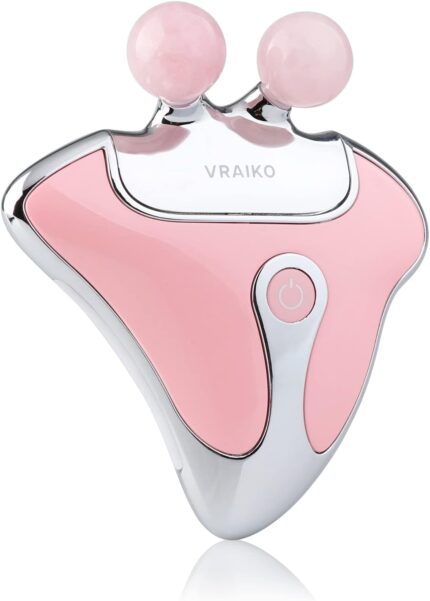 VRAIKO GemGlow Jade Roller and Gua Sha Device, 4-in-1 Gua Sha Face Tools, Face Massager with Red Light Therapy and Heat, Muscle Relaxation, Relieves Fine Lines and Wrinkles (Rose Quartz)