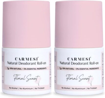 Carmesi Natural Underarm Roll On Deodorant for Women | 95% Natural + 5% Essential Ingredients | For Fresh Underarms All Day | No Alcohol & Aluminium | Floral Sunset | 50 ml (Pack of 2)