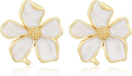 Gold Flower Earrings Large Flower Stud Earrings Flower Statement Earrings Chunky Floral Earrings for Women Jewelry Gift