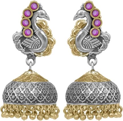 Aheli Dual Tone Antique Oxidized Peacock Design Crafted Jhumka Earrings Indian Fashion Jewelry for Women Girls
