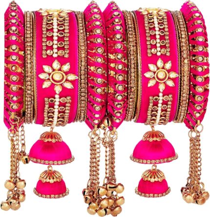 Aheli Traditional Wedding Designer Silk Thread Faux Stone Studded Bridal Bangle Set Chuda Indian Ethnic Bollywood Fashion Jewelry for Women