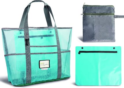 iumano Multipurpose Reusable Women Beach Bag – Foldable Hand Bag with 2 Travel Pouch Bags – Waterproof Large Beach Tote Bag, Shopping Tote Bag, Storage Bag, Grocery Bag, Beach Totes Bags