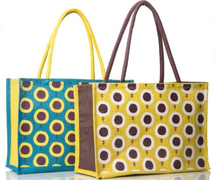 H&B Jute Shopping Bag – Designer Tote Bag | Trendy Bags | Shoulder Bag | Fashionable Tote | Office Bags | Grocery Bag | Handbag | Jute Bag | Reusable Bags – Combo of 2 (Combo Offer – Sunflower)