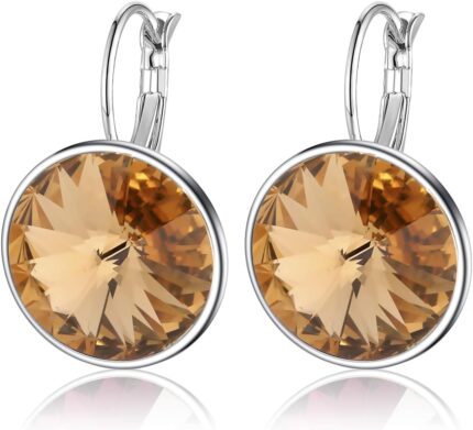 Austrian Crystals Round Drop Leverback Earrings for Women 14K Gold Plated Hypoallergenic Hoop Earrings