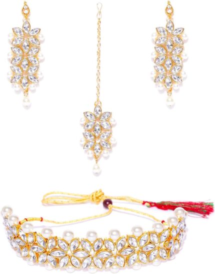 I Jewels Ethnic Gold Plated Pearl & Kundan Stone Work Bridal Jewellery Set For Women