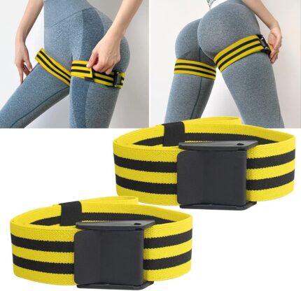 KASTWAVE Blood Flow Restriction Bands for Weight Lifting, Butt Thigh Arms & Legs Booty Workout, Occlusion Training Glutes Hip Building, 2 Inch Wide Strong Adjustable Women, Men(2 Pack,Yellow)