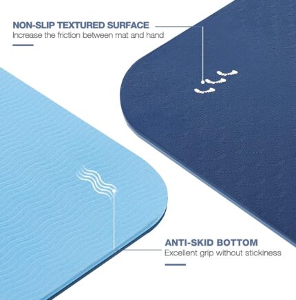 HEXAR® 6mm Thick TPE Yoga Mat 61x183cm Eco-friendly Non-Slip Exercise & Knees Supportive Fitness Mat for Men & Women, Workout Mat for Yoga, Pilates & Floor Exercise (LIGHT BLUE) (Pack of 2)