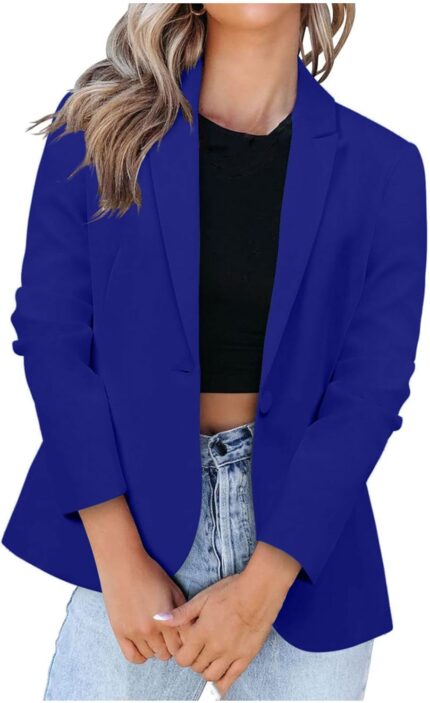 Women Casual Blazer Work Business Open Front Blazer Long Sleeve Suit Jacket Button Notched Lapel Blazer Jacket