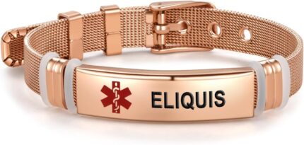 NARTGO Rose Gold Red Medical Alert ID Bracelet for Women Men’s Emergency First Aid Health Alert Laser Engraved Satinless Steel Adjustable Wristband Bracelets