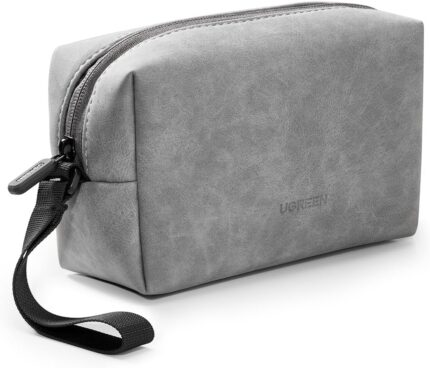 UGREEN Hard Drive Bag, Digital Storage Leather Bag, Electronic Accessories Gadget Organizer Case with Grid Layered, Travel Gear Storage Carrying Sleeve Pouch for USB Cable, Earphones, Power Banks