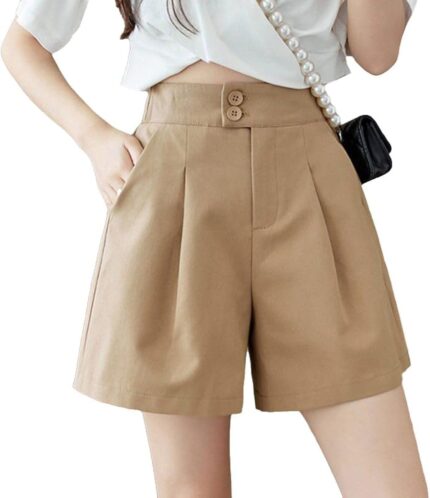Women’s Casual High Waist Wide Leg Workwear Shorts with Pockets