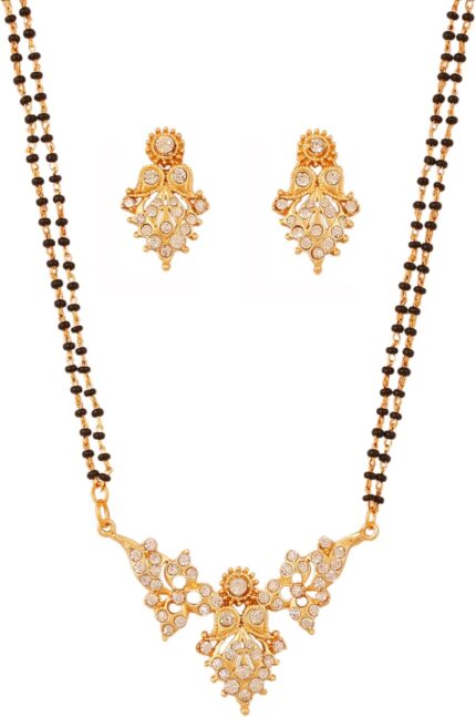 MEENAZ 2 Vati Wati Mangalsutra For Women Girls Temple South Indian Traditional 1 Gram Gold Stylish Maharashtrian Long Double Chain Double Mangal sutra Pendant Tanmaniya Black Nallapusalu Chains -667,