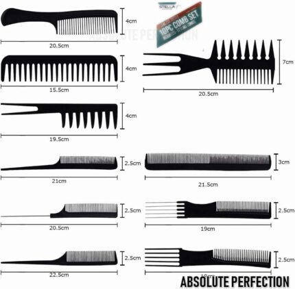 SHOWAY 10 Pcs/Set Complete Professional Salon Hairdressing Styling Tool Multifunction Pro Barbers Beautition Brush Combs Hair Cutting Comb Sets Kit Hair Massage for All Hair Types and Need
