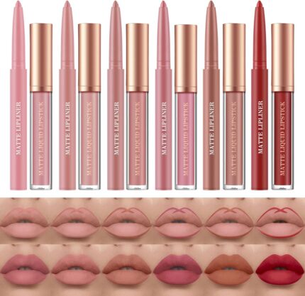BestLand 12Pcs Matte Liquid Lipstick + Lip Liner Pens Set, One Step Lips Makeup Sets Pigment Velvety Nude Lip Stain Waterproof Long Wear Lip Gloss Make up Gift Set (Set C)