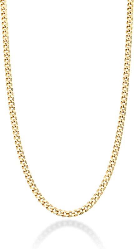 Miabella Italian Solid 18k Gold Over 925 Sterling Silver 3.5mm Diamond Cut Cuban Link Curb Chain Necklace for Women, Made in Italy