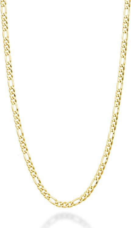 Miabella Solid 18K Gold Over 925 Sterling Silver Italian 3mm Diamond-Cut Figaro Link Chain Necklace for Women, Made in Italy