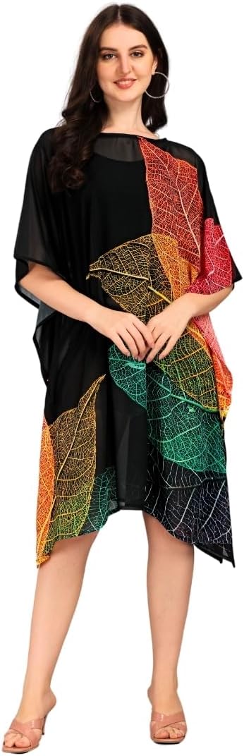 Elegant Modern Luxury Kaftan Dresses for women Stylish Party Casual Vacation Beach Modest Wear Cover up Caftan Short Loose-fit Plus Midi beach dresses Black Color, One Size
