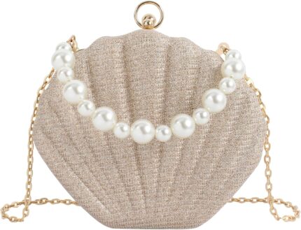 ZLM BAG US Glitter Seashell Evening Clutch Purse Mini Chain Crossbody Bag Pu Leather Shell Pearl Shoulder Bag